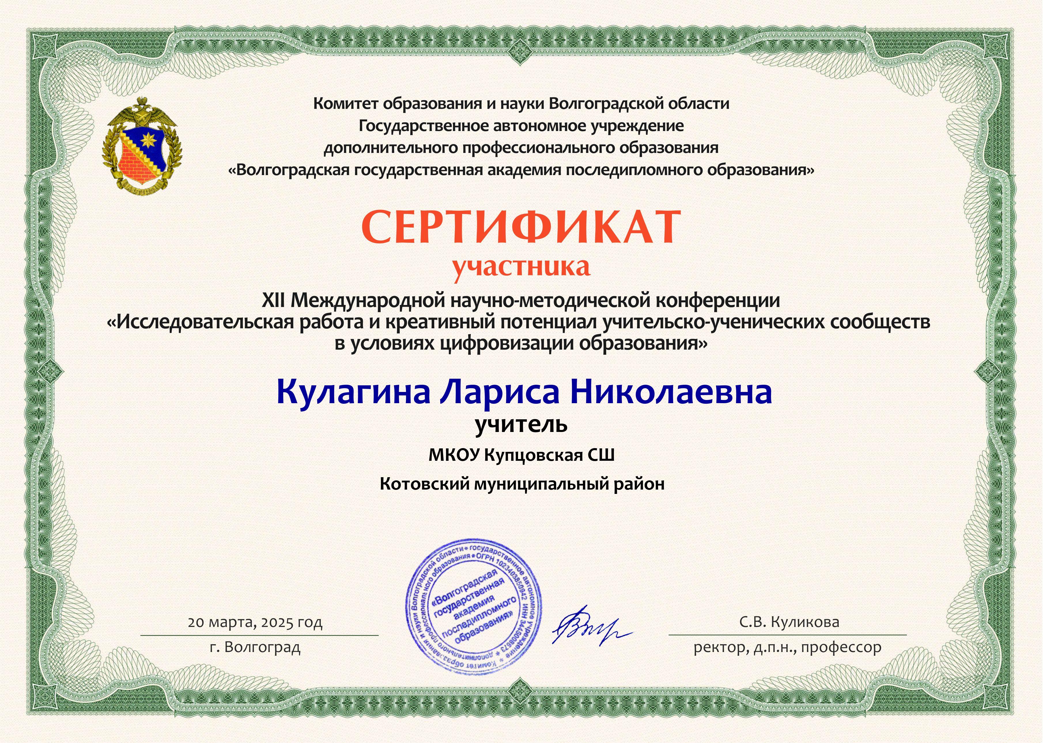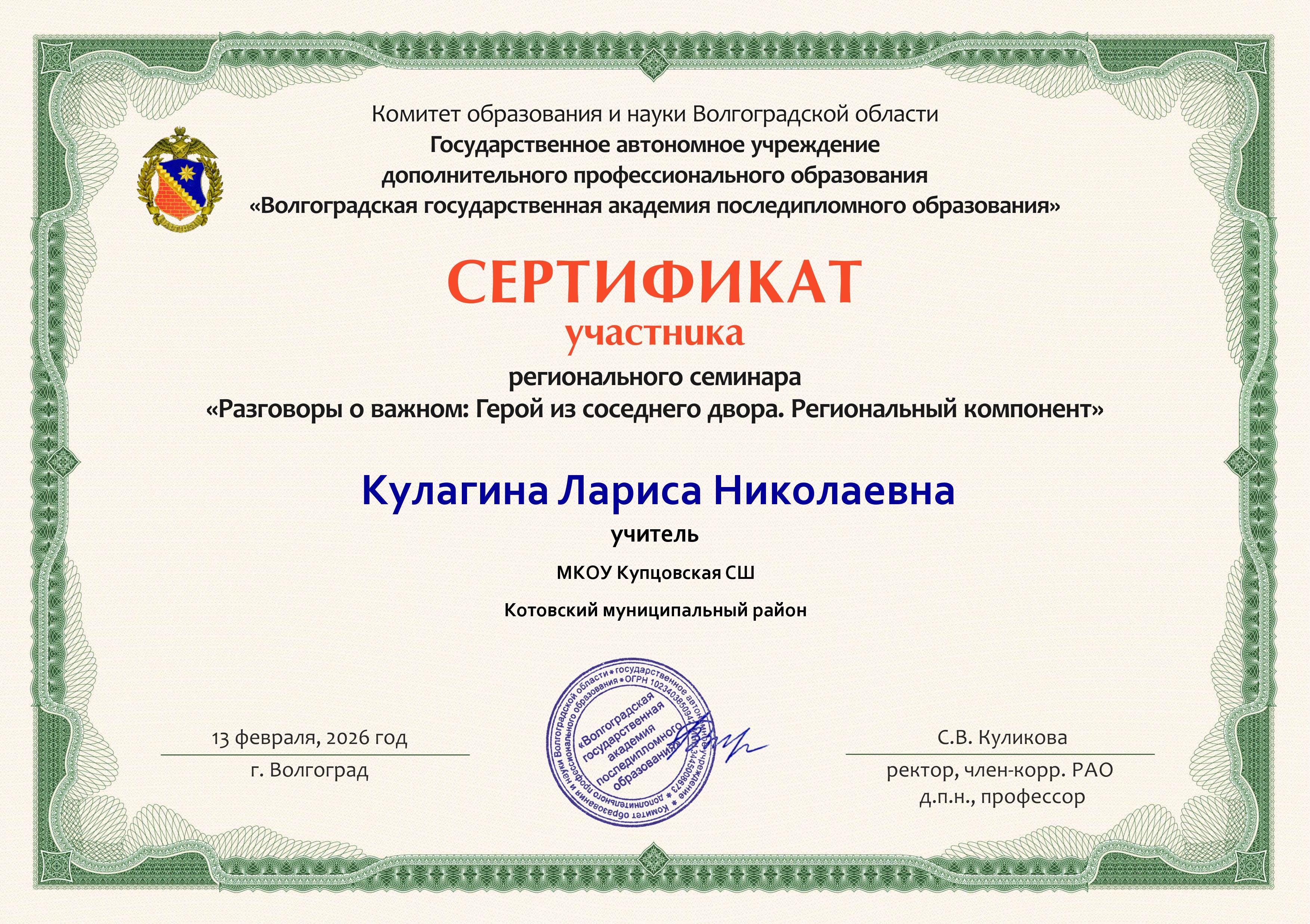 Кулагина Лариса Николаевна